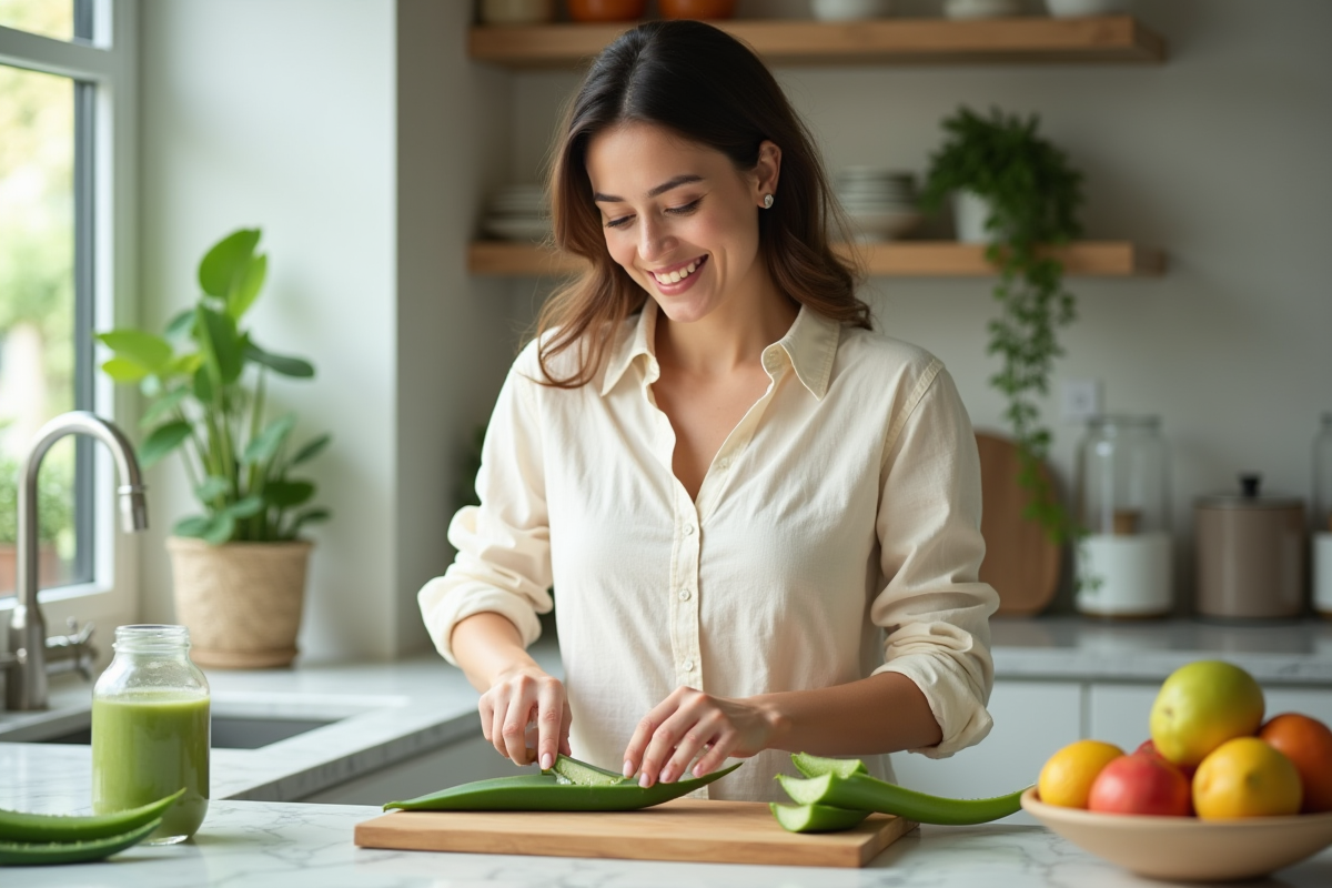 Intégrer l’aloe vera à ses repas s’avère plus accessible qu’on ne l’imagine. Le gel, extrait d’une feuille fraîche, multiplie les usages. Le jus, le plus courant, se dilue dans un grand verre d’eau, une tisane ou un smoothie. Privilégiez un aloe vera bio, rigoureusement certifié. Sa saveur discrète autorise des mariages variés : agrumes, concombre ou gingembre s’y prêtent bien.